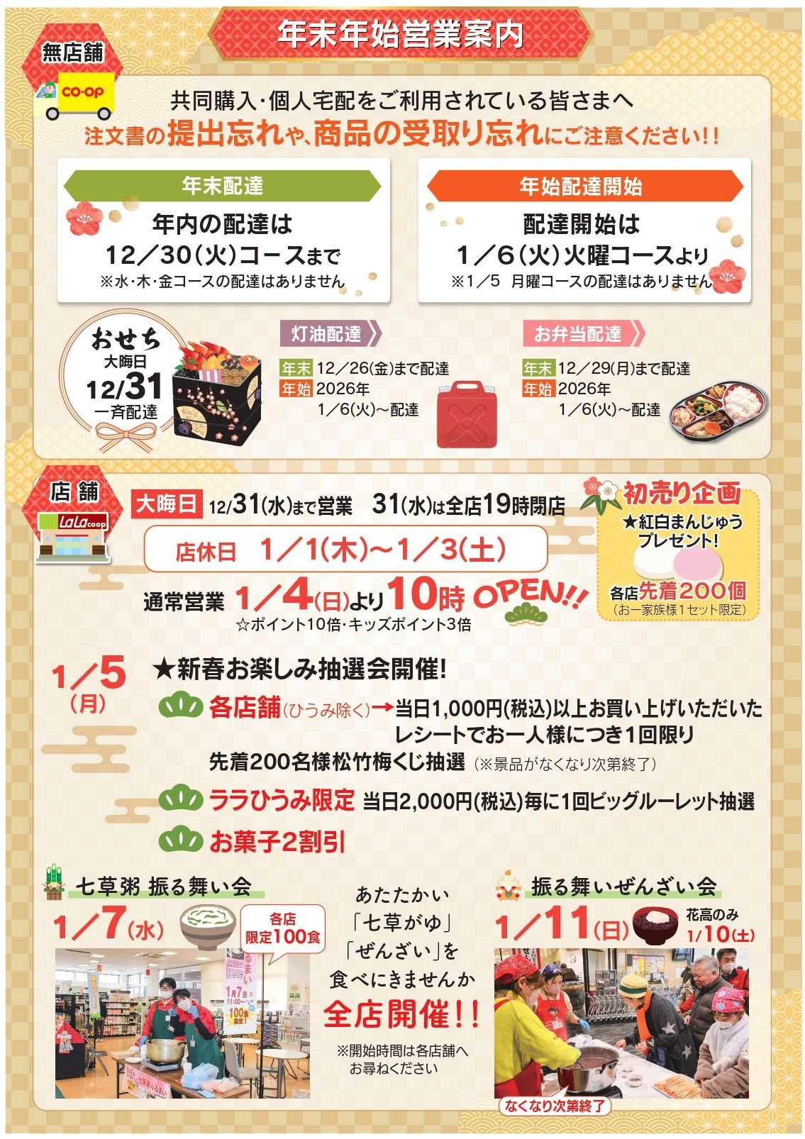 | 2025-12-02 | おしらせ | 地域にやさしい生協を目指しています! |
