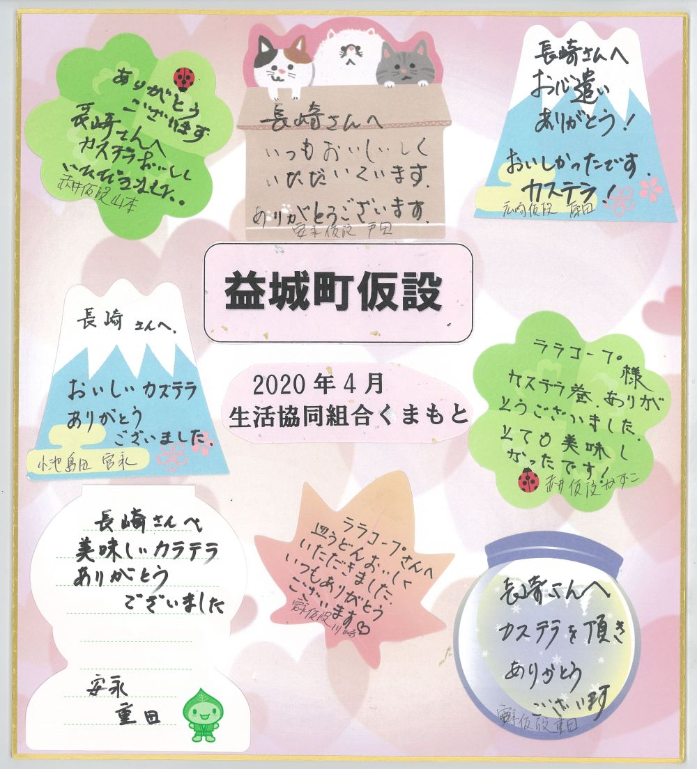この度、益城町仮設住宅よりお礼の寄せ書きが届きました。