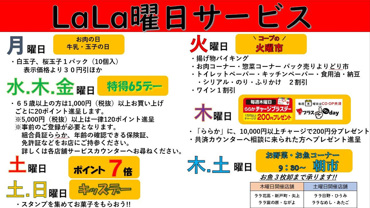 くわしくは、ララ各店のサービスカウンターへお問い合わせください。