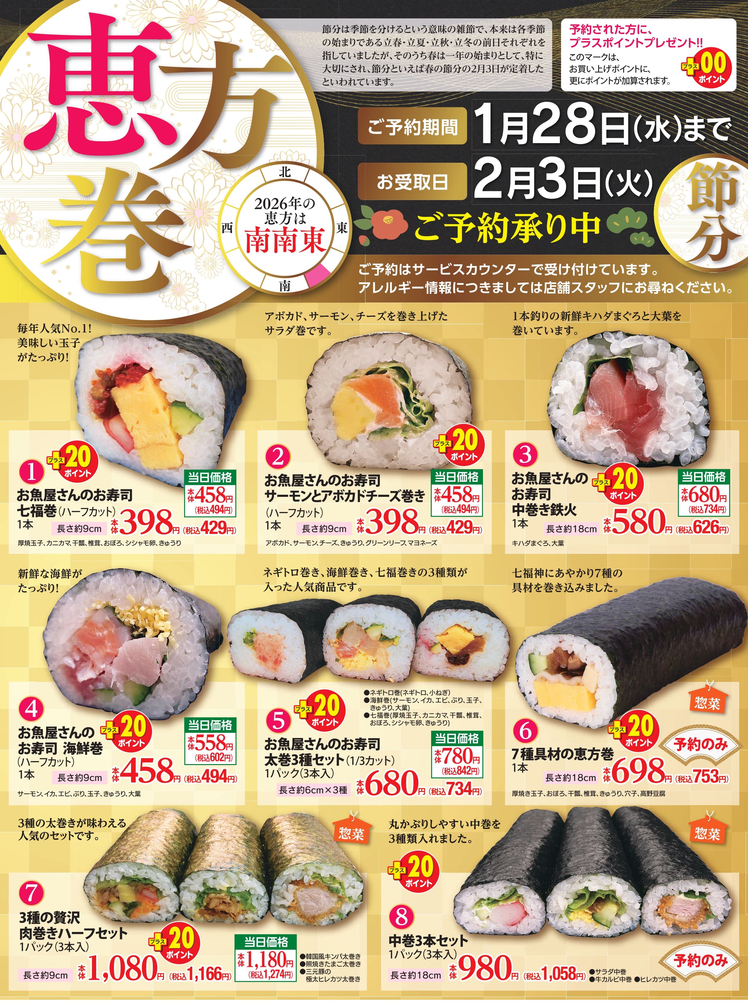 オードブル注文終了生餅受取 12/28午後1時以降開始~12/31酒・米ポイント