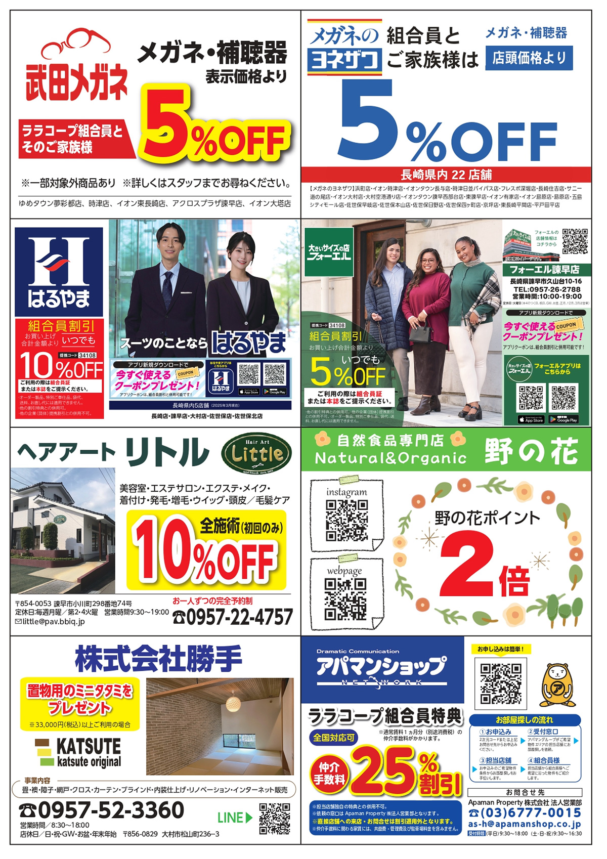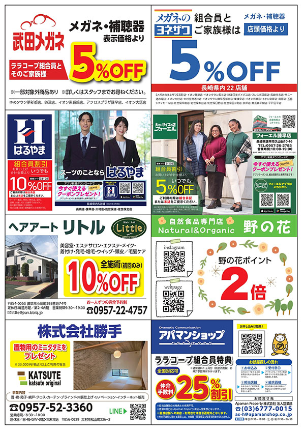 ララコープと提携している県内の企業・店舗で組合員証をご提示いただくとお得にご利用いただけます。
